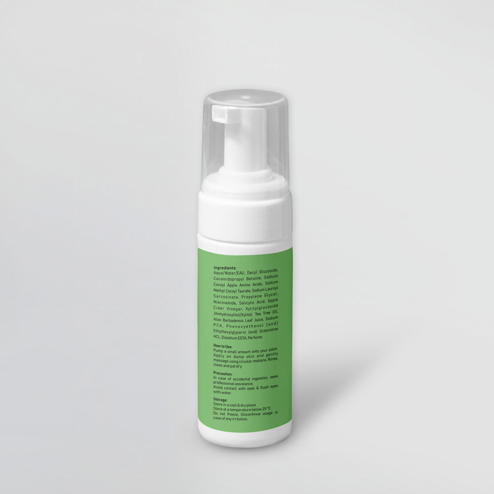 Ingredients: Aqua/Water/EAU, Decyl Glucoside. Cocamidopropyl Betaine. Sodium Cocoyl Apple Amino Acids, Sodium Methyl Cocoyl Taurate, Sodium Lauroyl Sarcosinate, Propylene Glycol. Niacinamide, Salicylic Acid, Apple Cider Vinegar, Xylitylglucoside /Anhydroxylitol/Xylitol, Tea Tree Oil Aloe Barbadensis Leaf Juice, Sodium PCA, Phenoxyethanol (and) Ethylhexylglycerin (and) Octenidine HCL, Disodium EDTA, Perfume.
