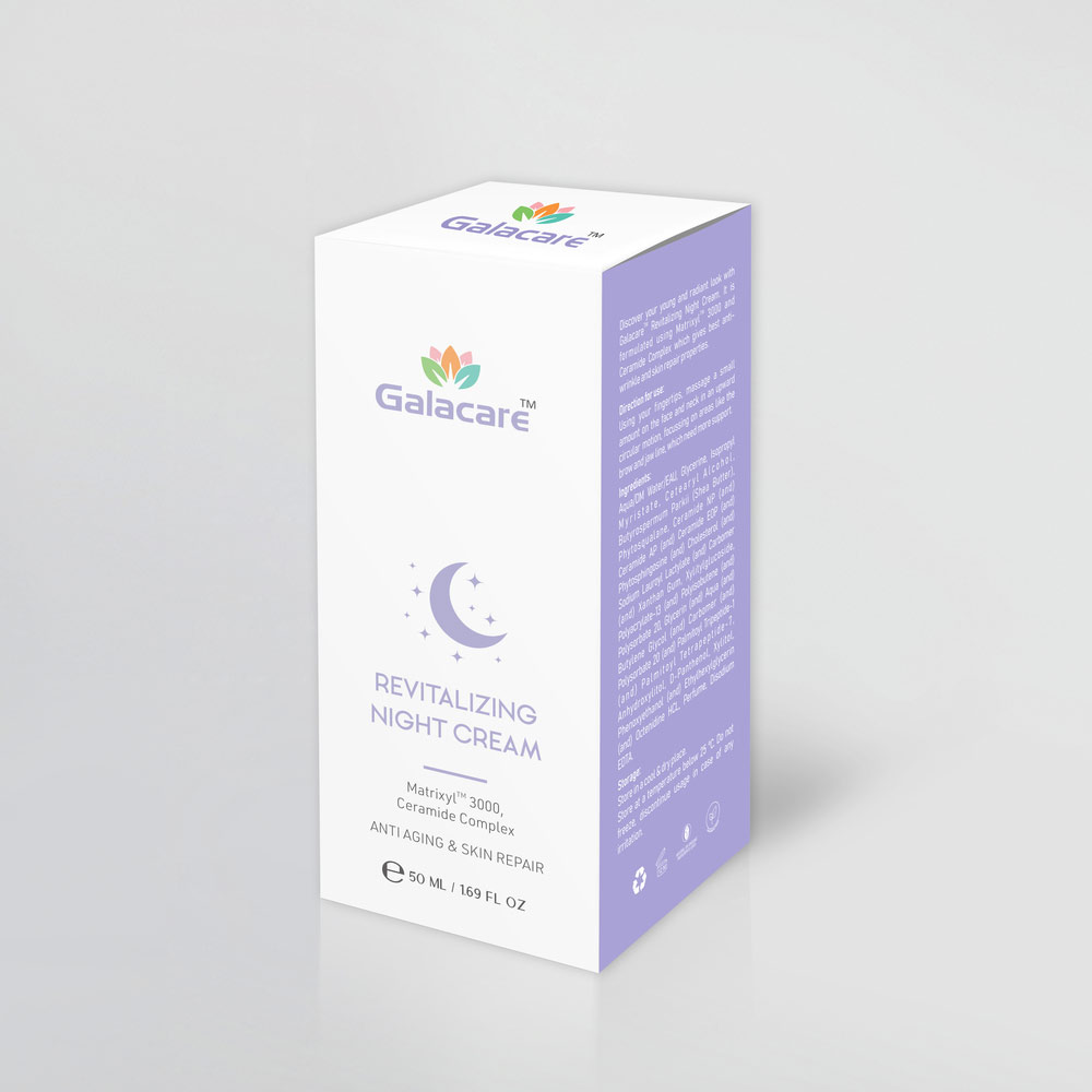 Discover your young and radiant look with GalacareTM Revitalizing Night Cream. It is formulated using Matrixyl 3000 and Ceramide Complex which gives the best anti-wrinkle and skin repair properties.