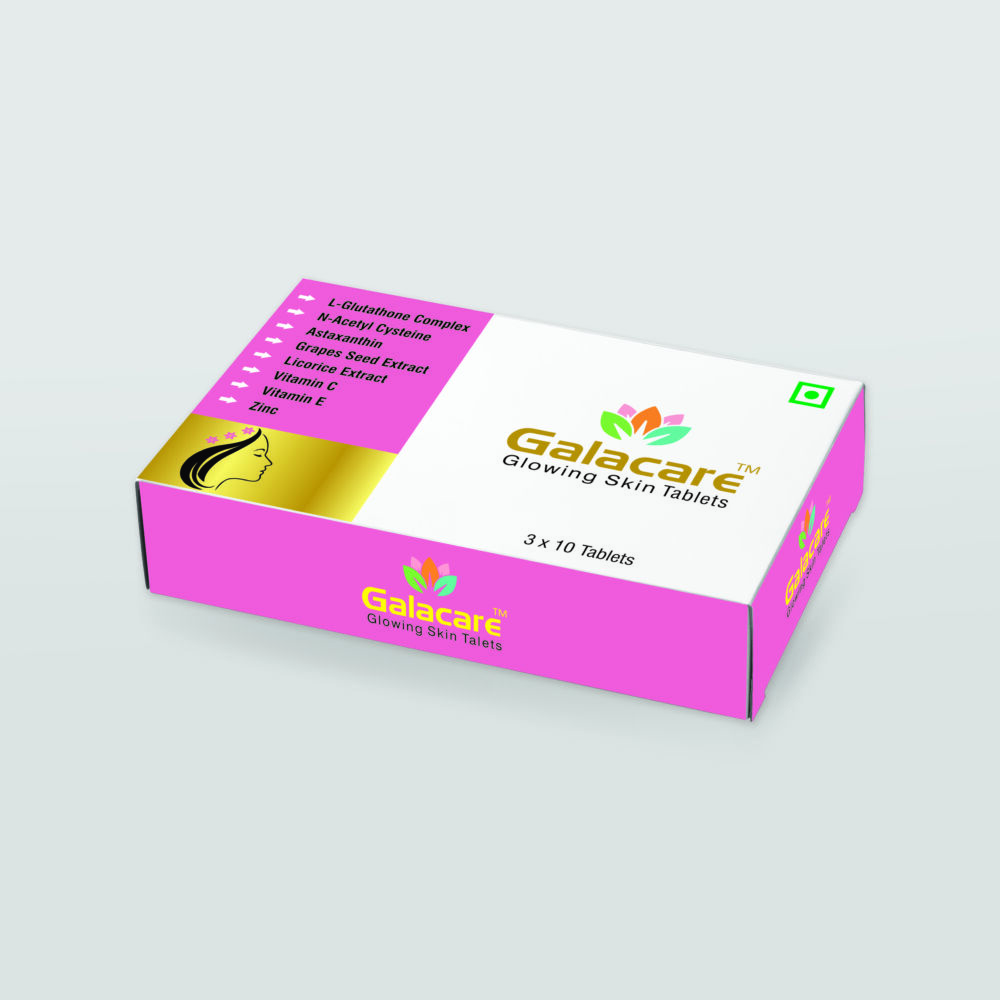 Brand and Name: “GALACARE-SKINGLOW” implies that the product is related to skincare and aims to promote a glowing complexion. The inclusion of “GALACARE” might suggest that the product is part of a skincare line or brand.